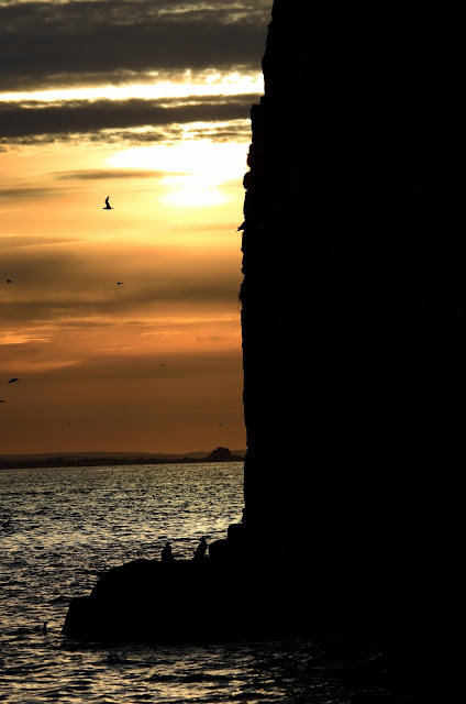 Since we have had a little bit of nice weather, the seabird level has gone up a notch or two. We saw our first jumpling of the year and you can hear lots of chicks calling everywhere now. We also got a really good glimpse of the kittiwake chicks on the nest and at one point I managed to get a picture of the mother feeding her chick.