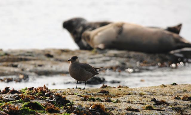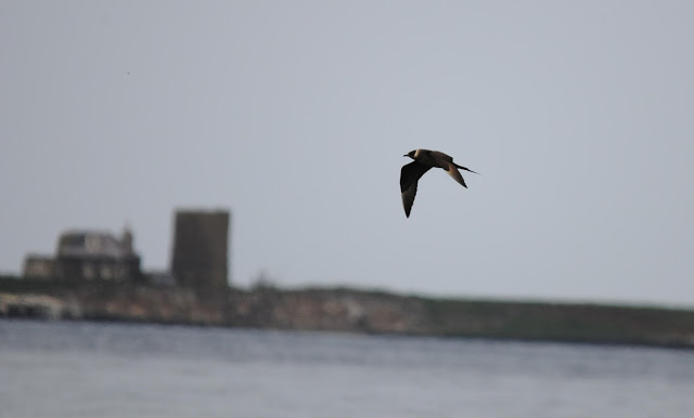 We have had a good few Artic Skuas around the Farnes lately and they have been doing what they do best and attack other birds for their food. We also saw one sitting on the rocks at Blue Caps and it was not bothered at all. It was just a pity it was directly into the sun.