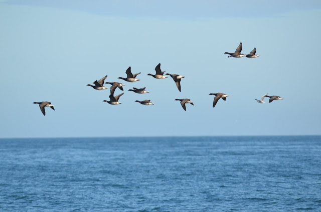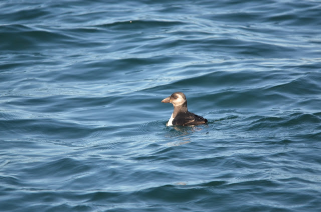 A change of weather and a change of sightings. A good few Arctic and Great Skuas passing through. A dozen or so of lingering Guillemots. Gannets galore and a single Puffin.