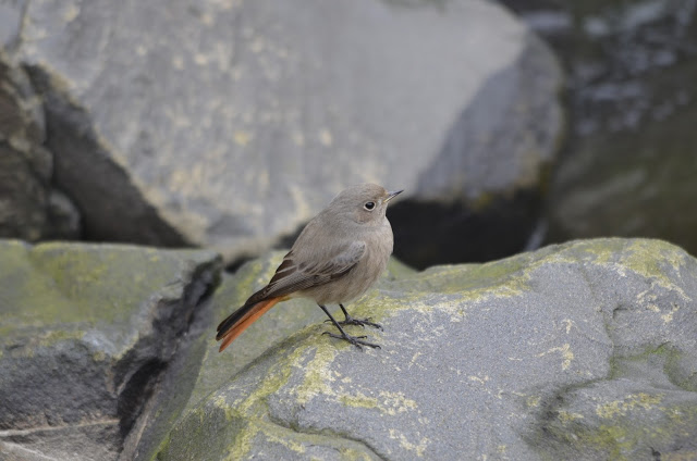 There has been a cracking Black Redstart hanging around the harbour over the last few days. I eventually caught up with it on Sunday and again today, and it up on a really good show too.