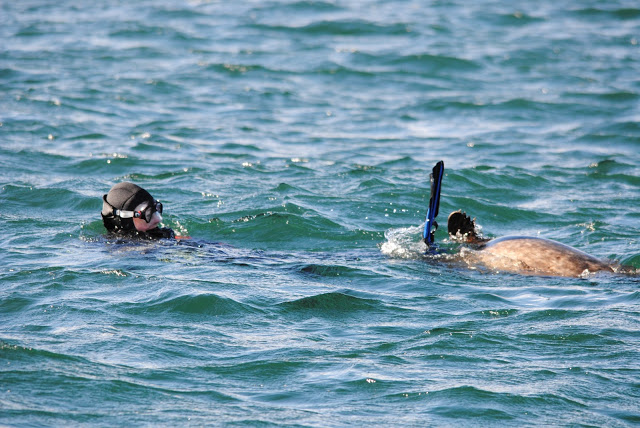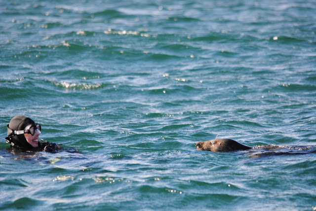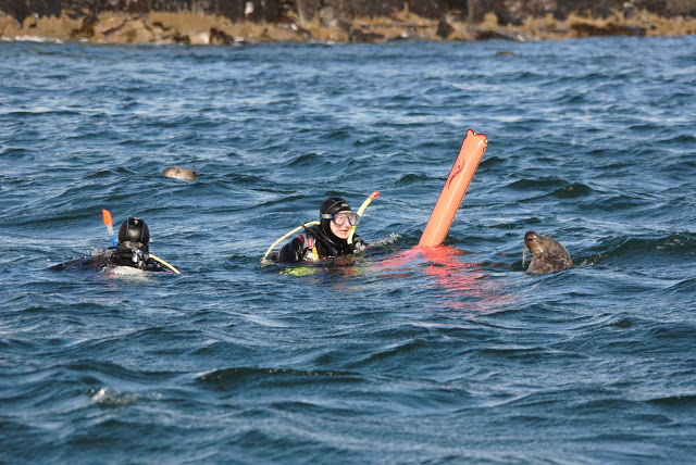 Here are some pictures of the seals on Friday playing with the divers.