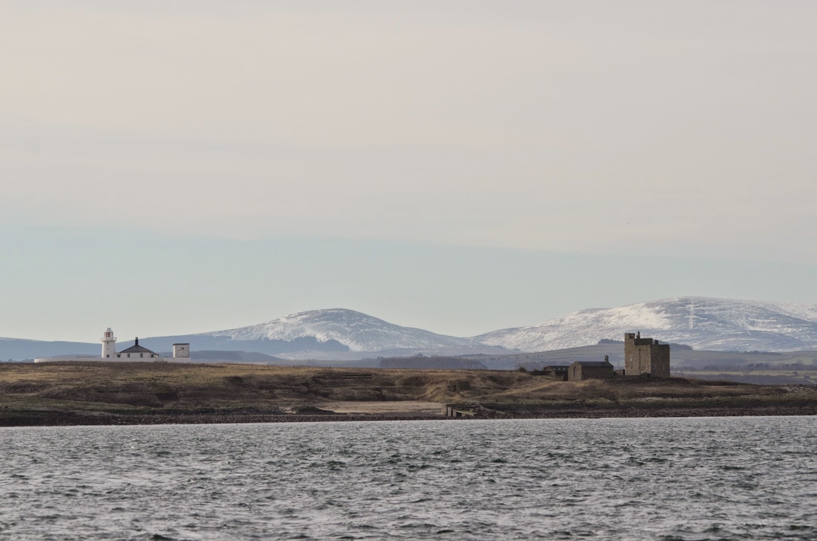 After that we went around the corner, along the cliff faces, under the lighthouse and then headed home, but not before looking at the Cheviot Hills covered in snow, which were really pretty.