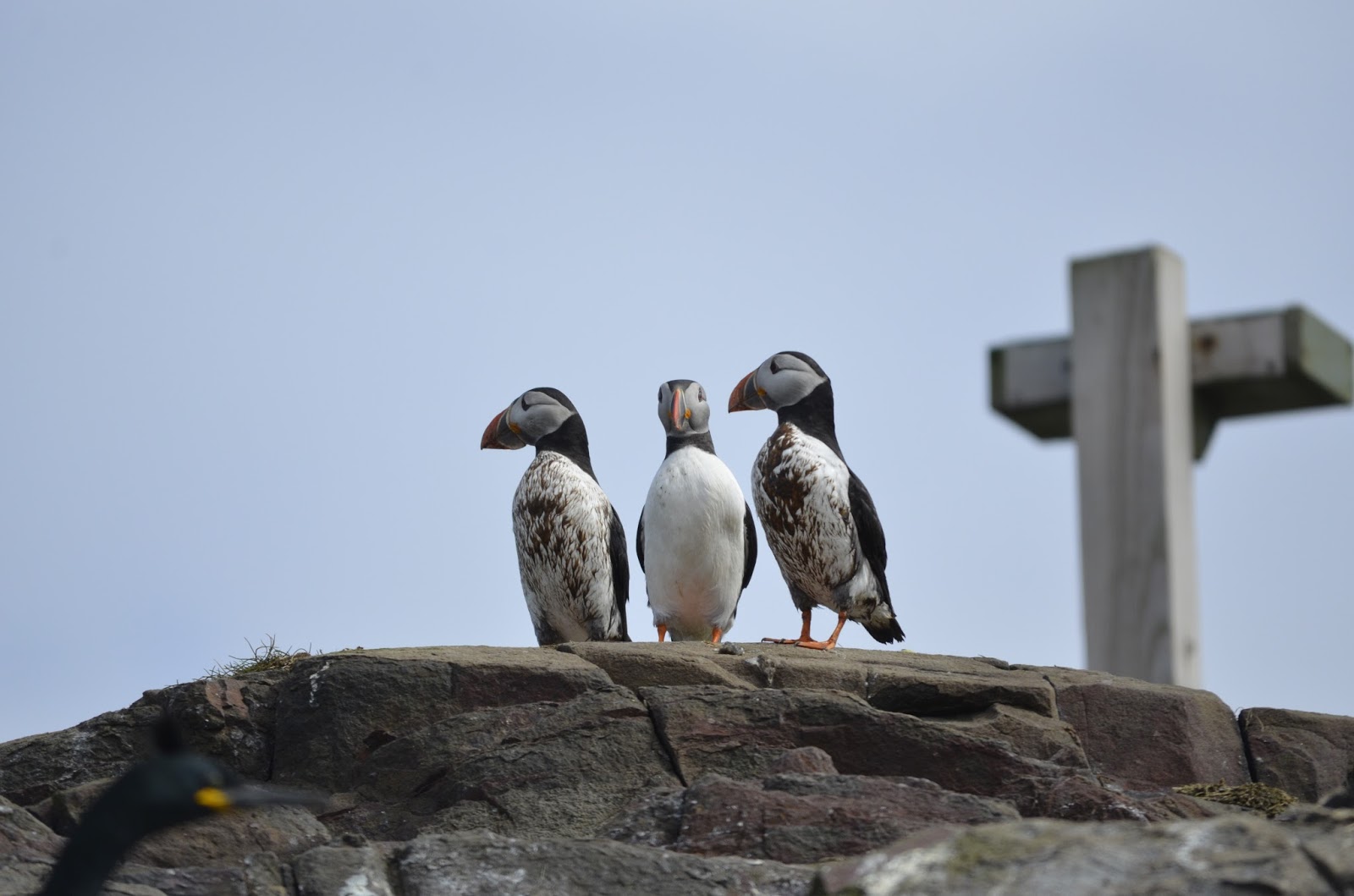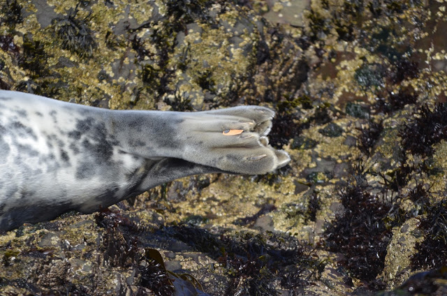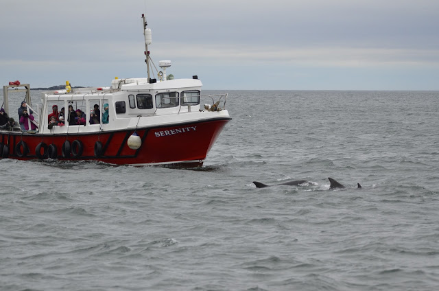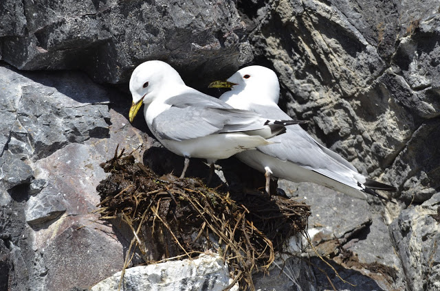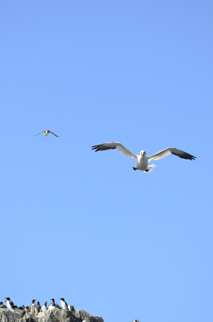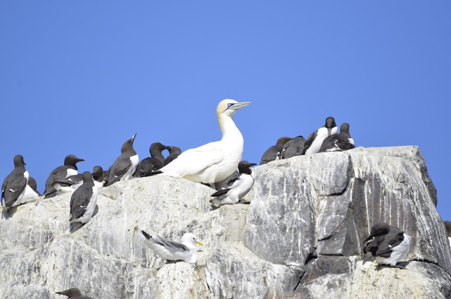 Over the last few days we have seen Guillemots on eggs, a Gannet sitting on the cliff edge with all the Guillemots and not a care in the world, Kittiwakes building their nests, 3 seals with tags but I have to say the tags are dreadful as the numbers just rub off which is really annoying. Some dirty Puffins and a good showing of Bottlenose Dolphins on Saturday and Sunday.