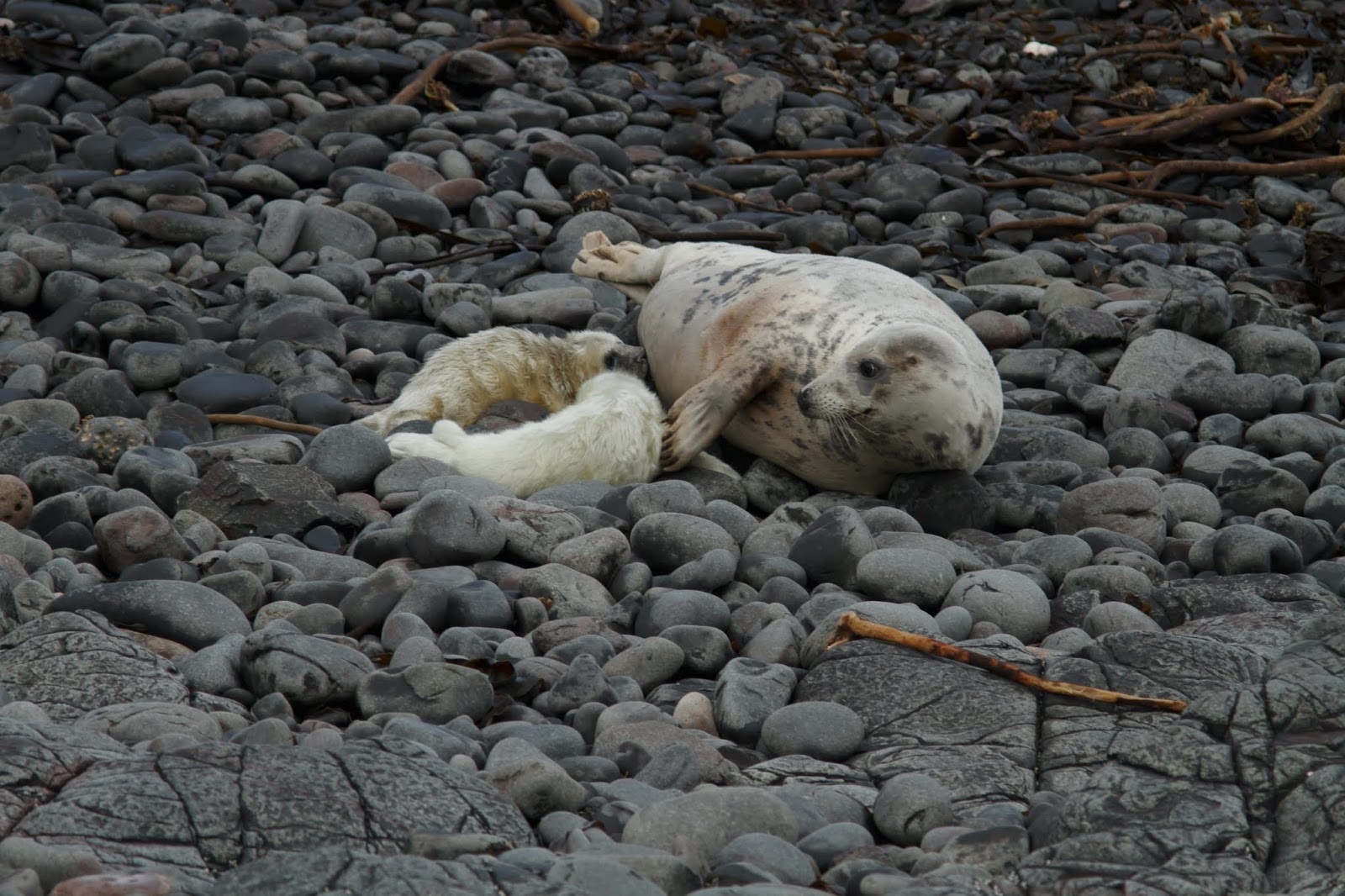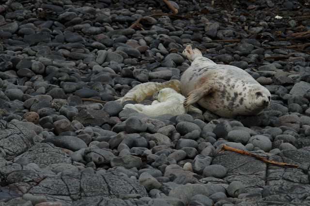 We have also witnessed a new born which was incredible and then seen the awful side of nature with 2 gulls eating a still born. I know its nature and its not nice to see, but I suppose one hand feeds the other. The blood on their bills is something out of a horror film but again we might not like it but its how other they survive. I was talking to a diver a few weeks ago and he said that he saw a still born on the seabed during one of his dives but it did not phase him at all, as he watched a sea urchin, and starfish eating the decomposing body so it was helping them to survive as well.