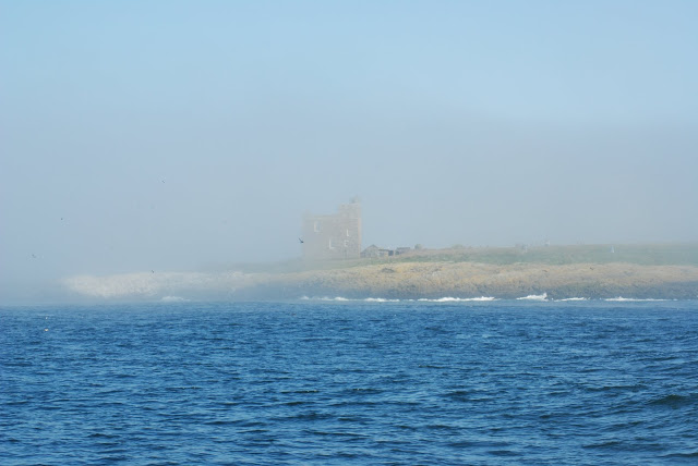 We left the harbour and headed towards the Inner Farne and it was still thick fog. After chatting to the guests about the birds and the Inner Farne we steamed up to the Megstone to see the seals. We had only got a few hundred yards away from the islands when it started to clear. It was a bit surreal as the fog was just on the bottom and the top of the island was clear.