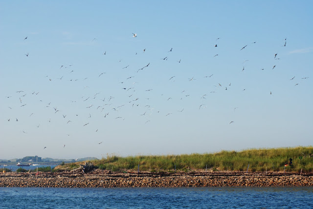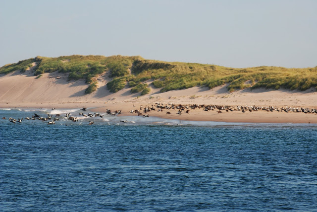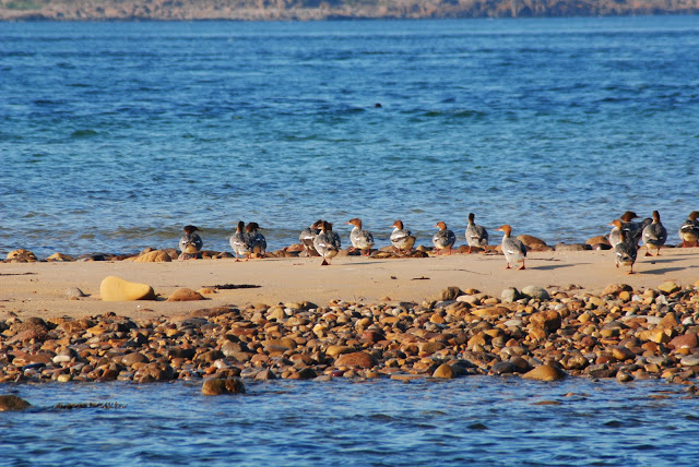 After leaving the jetty we cruised towards Black Law Rock. As we approached the rock we encountered 22 Female Red Breasted Mergansers and 2 Males, a Seal, 12 Cormorants, loads of Arctic Terns and over a thousand Eider Ducks. Alot of the Eider Ducks we going through the colour change which looks quite nice but also a bit weird.