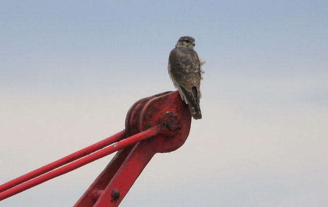 Any visit to the islands produces special birds and today was no exception, an immature Merlin was picked out atop the small crane on Longstone and we were able to approach slowly and get some great views of this diminutive raptor.