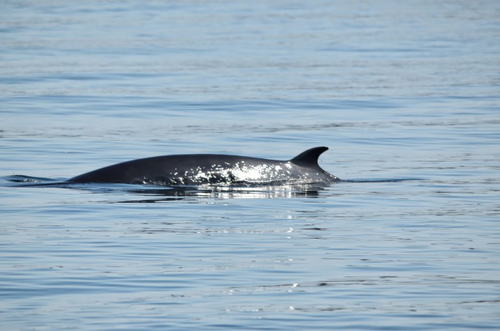 A gentleman said that he had spotted something like a dolphin in the water but I dismissed it straight away saying that it was a seal, but I had to back track as it broke the surface and I saw a Minkie Whale.