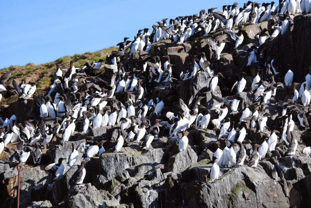 The cliff faces were covered in Guillemots and it looked very settled until I revved my engine and then they all flew off in a big circle and then landed again.