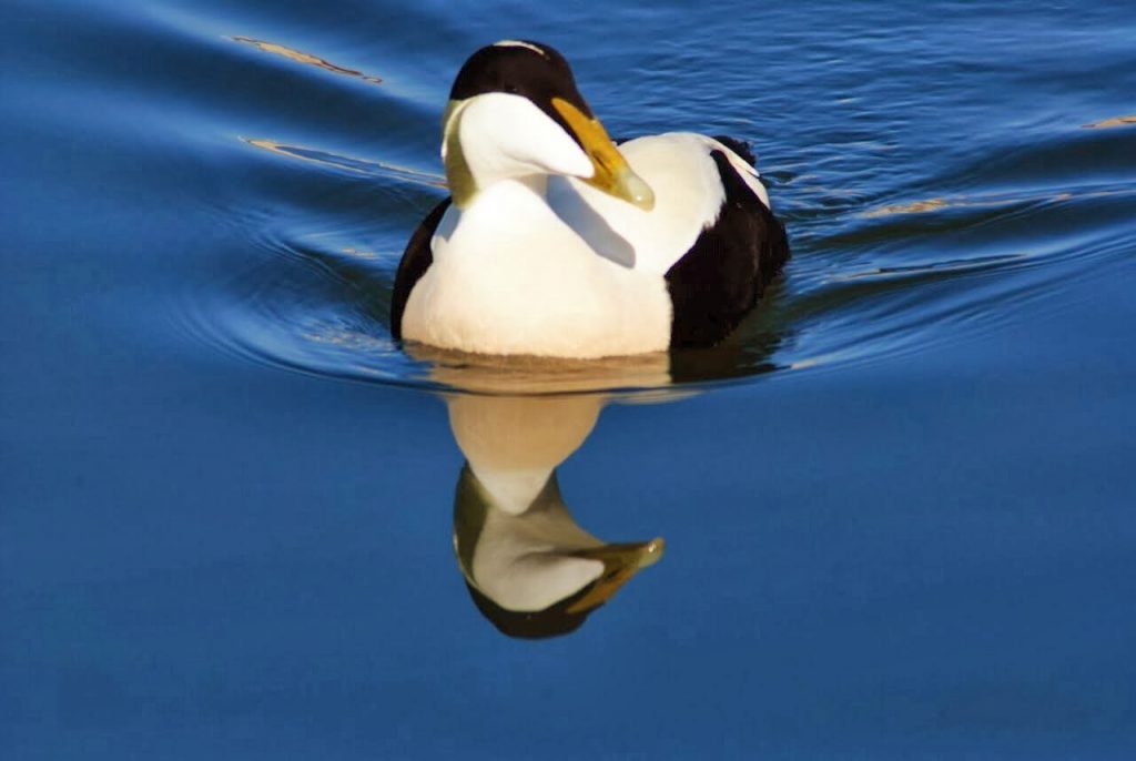 The Eider Ducks are in full summer plumage and are in the mood for some courtship as they patrol the harbour looking for love. I must admit I do love them and if you have been to Seahouses you will know how tame they are and love a bit of bread. They are very intelligent to as they know the noise and colour of one particular fishing that come into the harbour as they follow it everyday looking for some scraps of food.