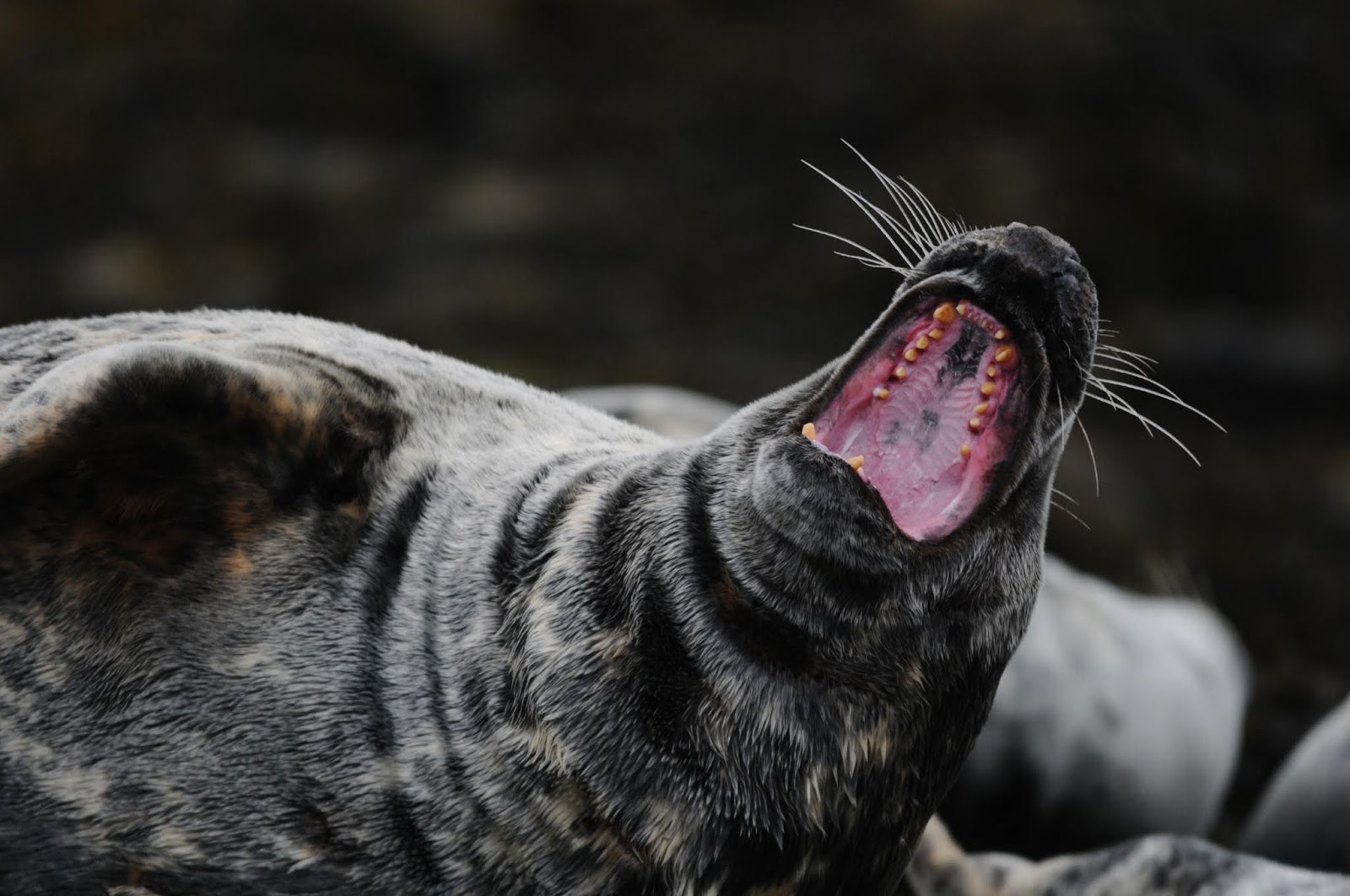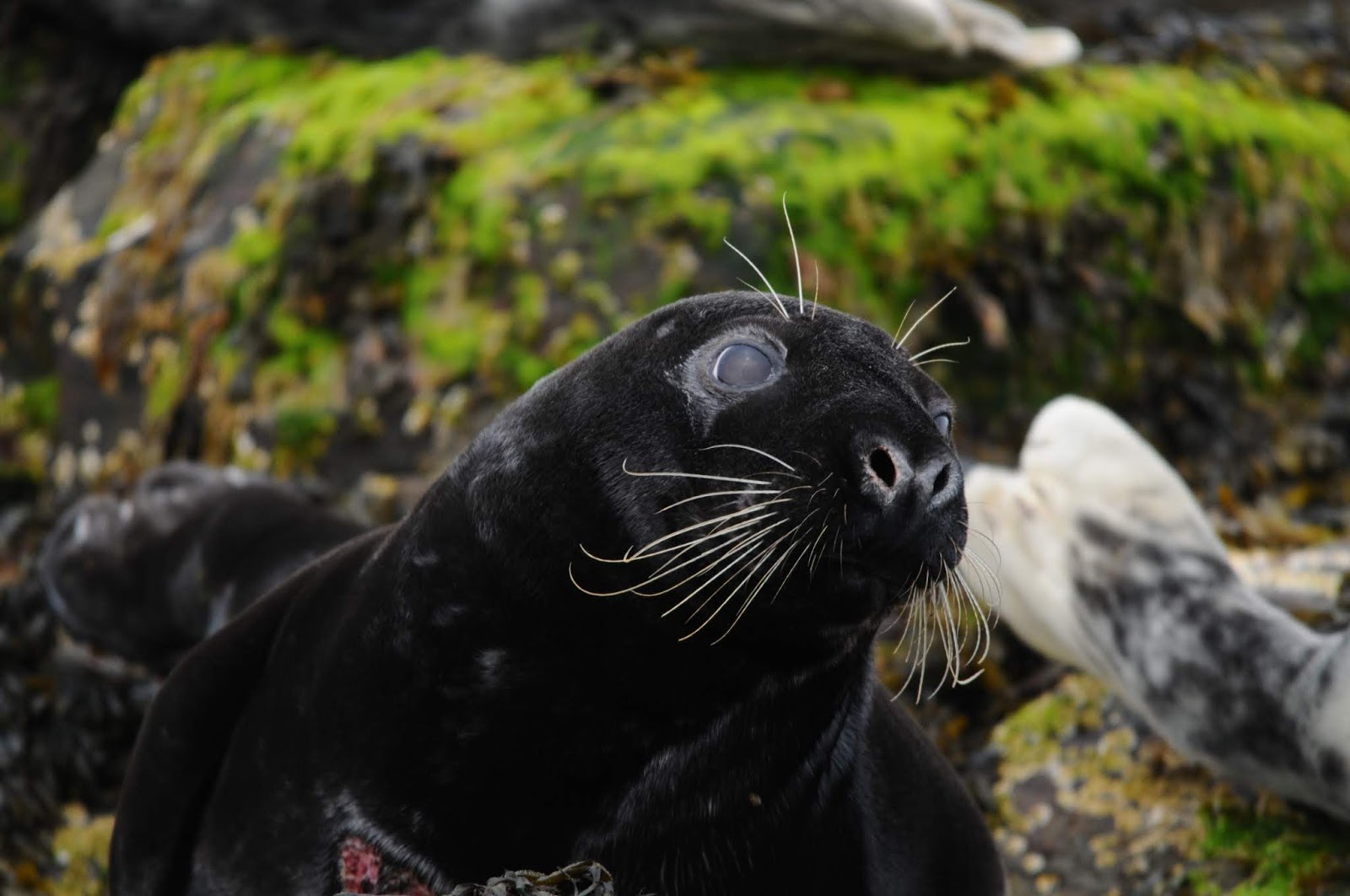 Since it seems to be the in thing at the moment with all the men having beards I thought it would be prefect timing to show you a young bull seal with his perfect whiskers. Okay it is not a bearded seal but he is proud of his young whiskers and with him being so dark in colour they stand out like a sore thumb.