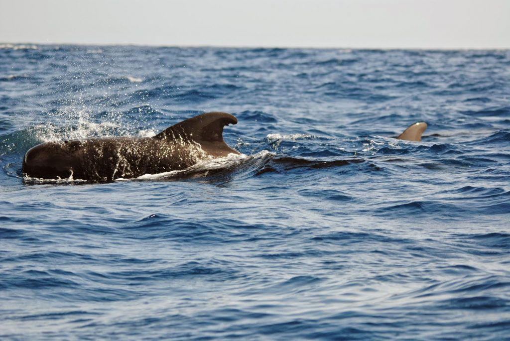How wrong was I… We had only been out about 20 minutes before we spotted Pilot Whales in the distance and the next thing they were around the boat. I counted at least 30 and they were having a bit of fun in the waves to.