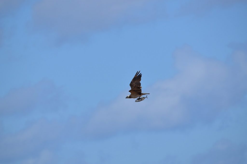 Well as it happens we also saw an Osprey catch a fish and take it back to it’s nest, two Greater Hoope-Larks playing beside the car and as we looked towards to sea we saw 10 Common Dolphins and 10 Pilot Whales feeding.