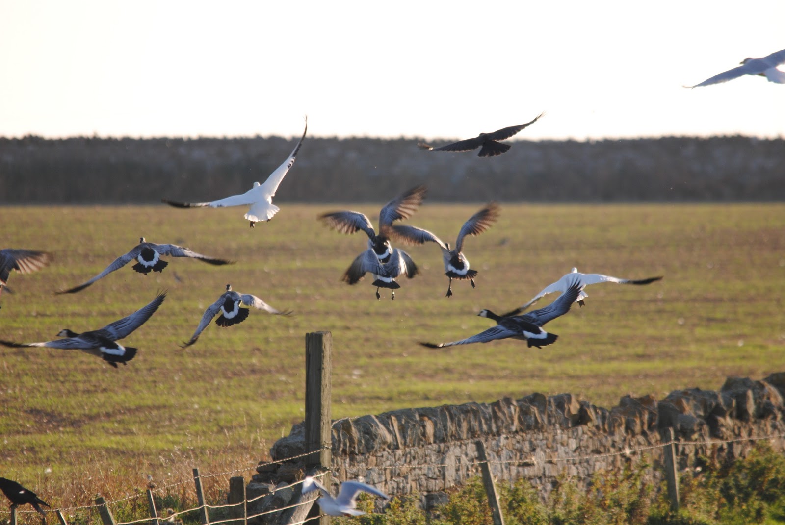 They are very like a Snow Goose but smaller and both geese are high arctic breeders. All I can think is that it was blown over during the strong winds from Katia, but the origin of most European records of Ross’s Geese are uncertain. They are certainly a potential vagrant from North America but the situation is complicated by escapes from captivity, some of which are breeding in the UK. To be honest I’m not bothered that they are escapes are they are little beauties.