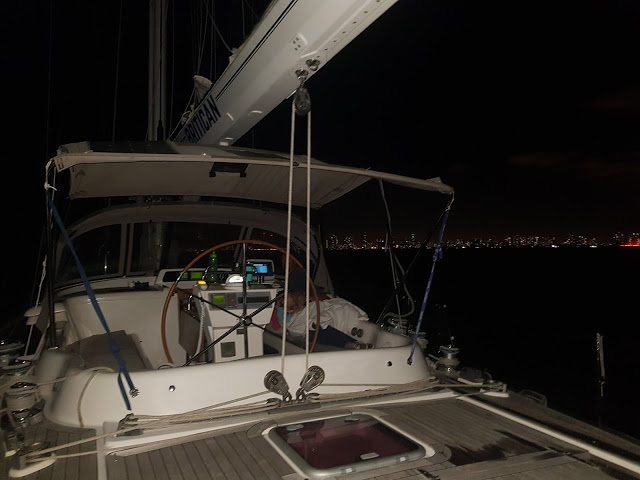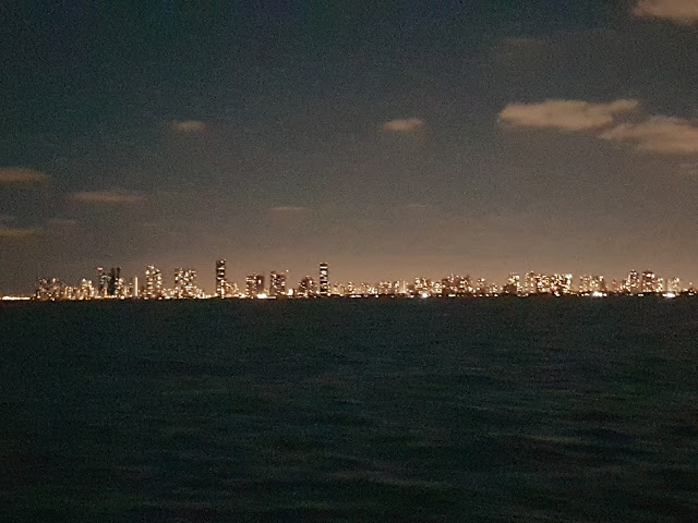 As dark approached all we could see were the lights of Miami as we headed out to sea. We were going to be at sea for two days so we were hoping the weather was going to behave itself and we would get there in good time with no hick ups at all.