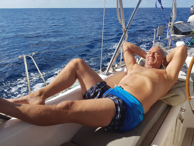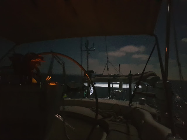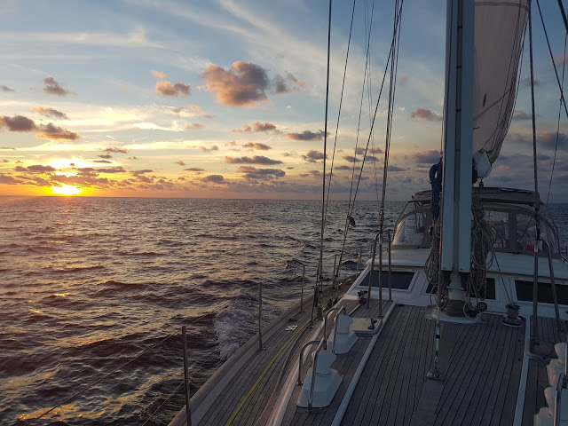 Day 1 was described by Simon as Champaign Sailing, as it was flat calm, sunny and perfect winds which made us do an average of 7 knots all day.