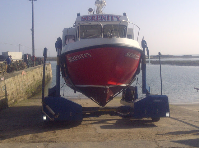 At 9am on Sunday morning we lifted the boat with the hoist and headed towards the slipway. As she entered the water we turned the key and bang the engine started stright away. Not bad after 5 months out of the water.