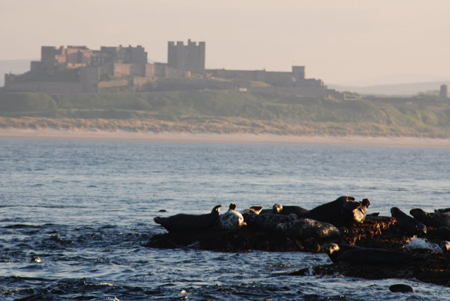 We could not go home without seeing the seals anyway, and after hunting high and low for them we noticed them at the Megstone. Now the Megstone is most Northerly of the islands and we don’t go there very often so of we steamed. As we arrived their was loads and I got a nice picture of Bamburgh Castle in the background to.