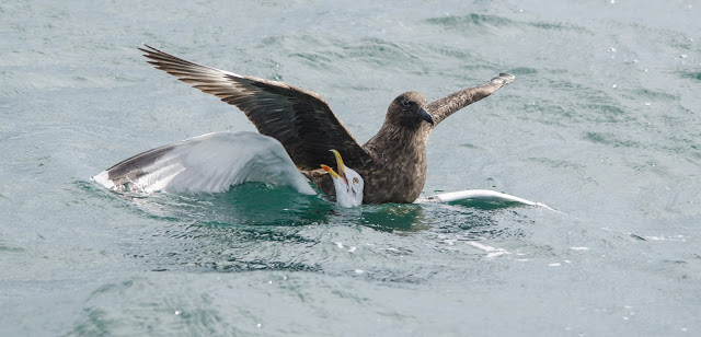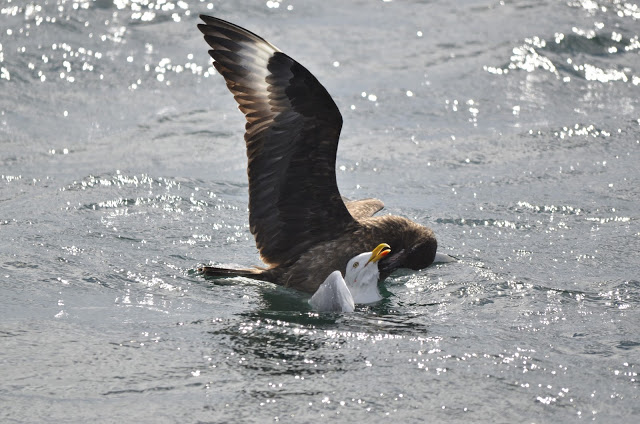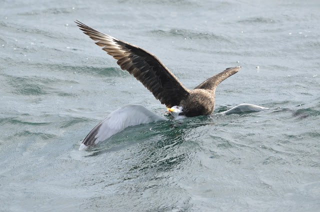 Yesterday (21/05/2016) we witnessed a Great Skua trying to kill a Herring Gull.