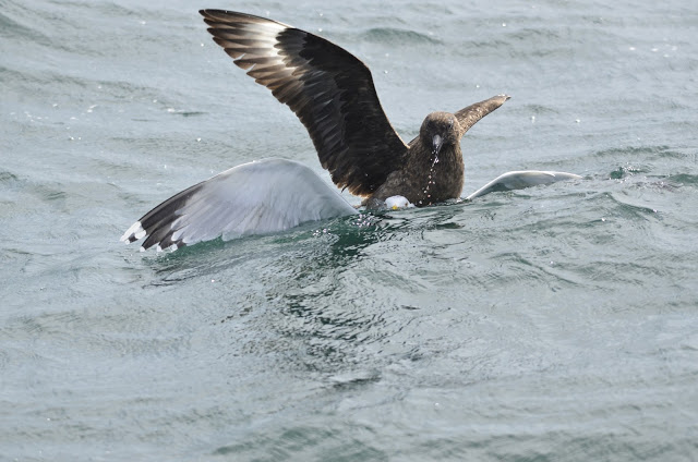 They don’t just pick on small birds either as I have heard stories from other birders that they have seen skua’s take down a gannet to get their food. Now you have to have some balls to do that as they are a big seabird but I suppose it’s survival of the fittest and these birds just don’t give up, so to see one the other day killing a herring gull it just goes to show you that will not stop at anything to survive.