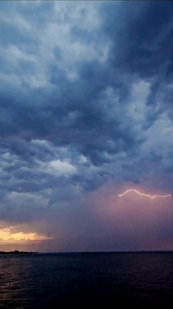 One evening started out with calm seas so smooth they looked like melted glass. We cruised out with the sun beginning its slow descent, golden light dancing off the ripples. But not long after, the sky darkened and, BOOM—a thunderstorm rolled in from nowhere. Thunder cracked overhead, the sea changed in mood, and then came the lightning.