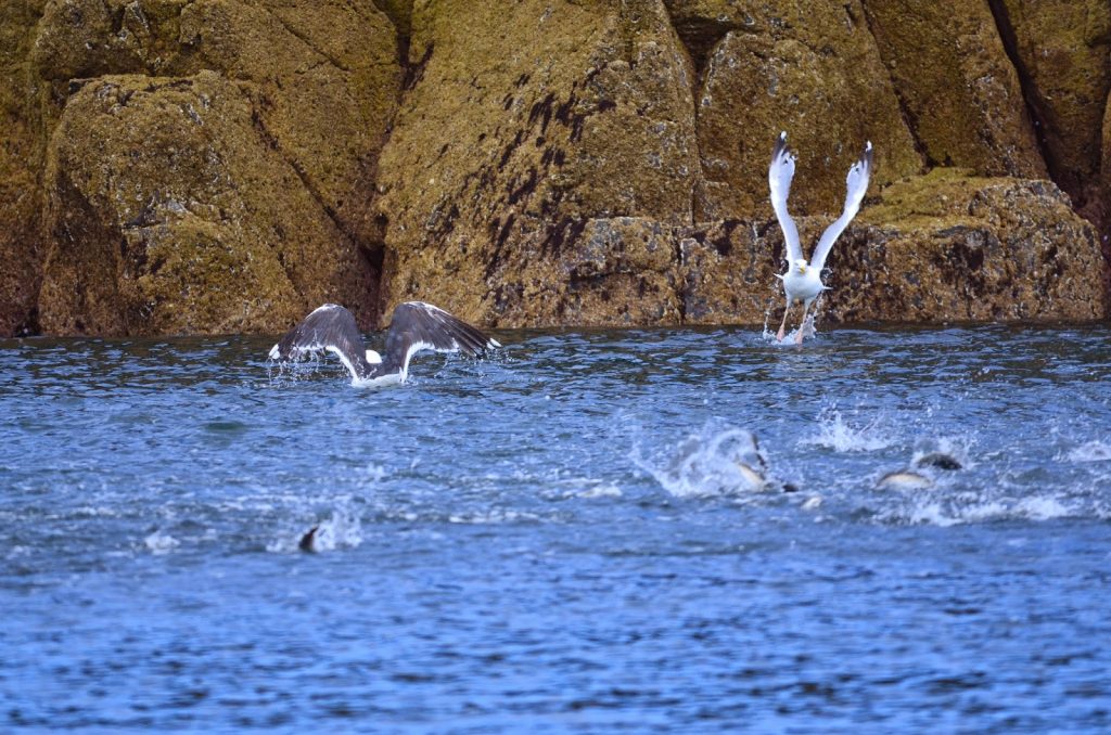 I also witnessed fish jumping out of the water near the Pinnacles and after talking to David and Laura from the Farnes we come to the conclusion that it was a young seal swimming past them and that why they were jumping out of the water.